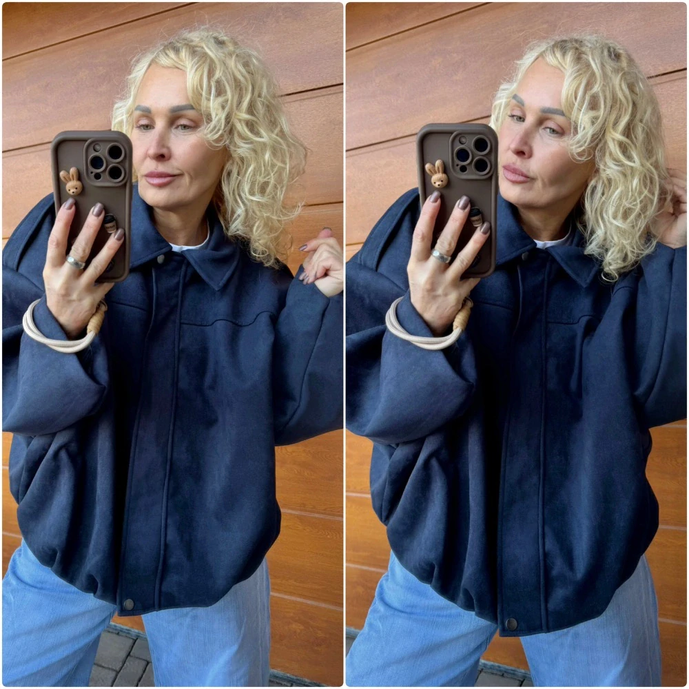 PODŠITÁ SEMIŠOVÁ BUNDA TMAVĚ MODRÁ